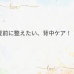 これからの季節は、背中を見せるお洋服や水着など背中ケアが気になる時期です!!